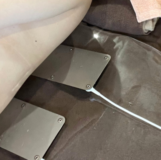 筋膜の癒着があると引っ張られてしまいたるんでしまうので、まずはリリースカッターやNRマシンで剝がしてあげることによって筋肉が元の位置に戻ります。