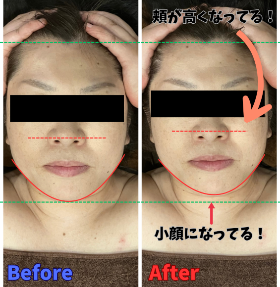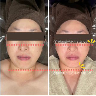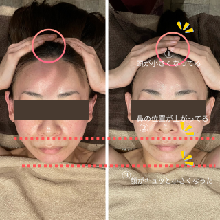 形成モードで骨格調整をしながらグッと引き上げ、むくんで膨張していた頭もキュッと小さくなります。