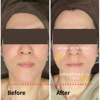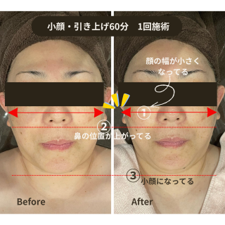 はじめてリフトアップの施術を受けたのですが、もうビックリです。顔の筋肉が物凄く動くのなんの(°▽°) ちょっと人には見せられないくらい顔がギューってなる感じに、見えていない自分の顔を想像して笑いそうになりました。施術後はすぐに効果が出ていて...