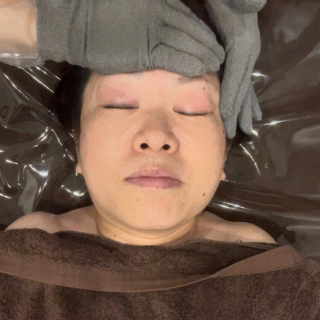 その後お肌に優しい天然ハーブでピーリングをしていきます。ピリピリせず敏感肌やアトピーの方にも使用できますので安心して受けていただけます。