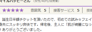 今回は初めての試み☆フェイシャルをお願いしました。デコルテの他、腕や肩周りまでも施術して頂き、心身共にスッキリ爽快です。帰宅後、主人に「肌が綺麗になったしハリが違う」って言ってもらえました。これは、たまにしなくちゃですね!ありがとうございま...