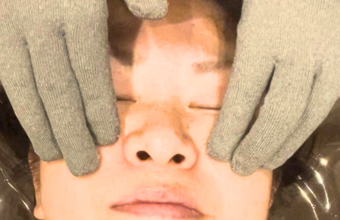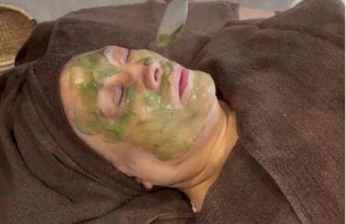 その後お肌に優しい天然ハーブでピーリングをしていきます。ピリピリせず敏感肌やアトピーの方にも使用できますので安心して受けていただけます。
