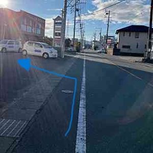 右にぎゅーとらハイジが見えたら次の信号で斜め左へ曲がります。